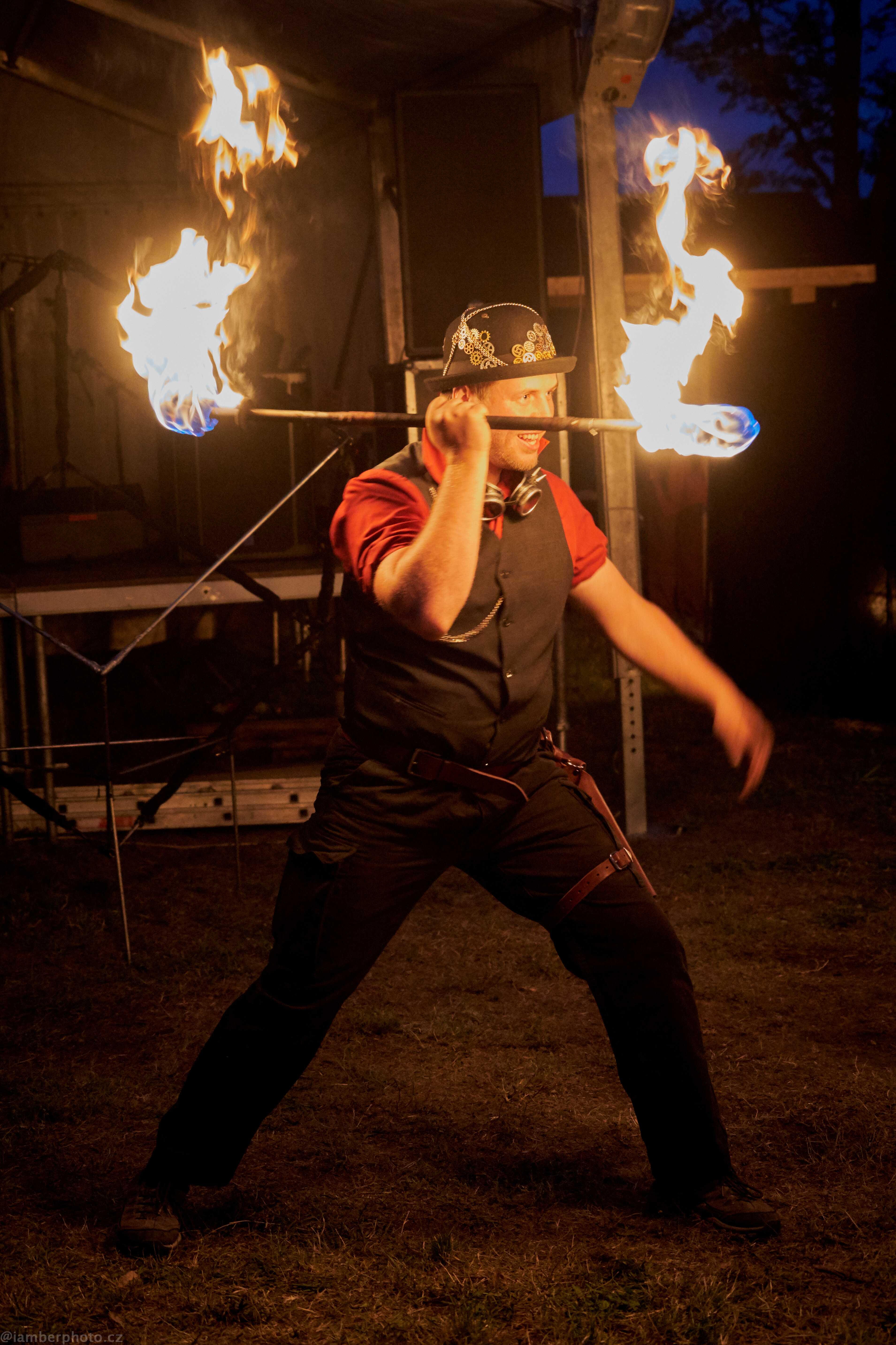 I přesto, že jsme historický šermířský spolek, tak od nás historickou ohnivou show neočekávejte. Naše show je plná akčních choreografií, ve kterých spojujeme oheň dohromady s tancem, divadlem, a dokonce i akrobacií. A díky velkým ohnivým efektům a pyrotechnice se naše vystoupení stává jedinečným a nezapomenutelným zážitkem. Samozřejmostí je pak profesionalita a bezpečnost práce a v případě potřeby i samostatné ozvučení. Tak neváhejte a kontaktujte nás, abychom se mohli domluvit na konkrétním vystoupení.