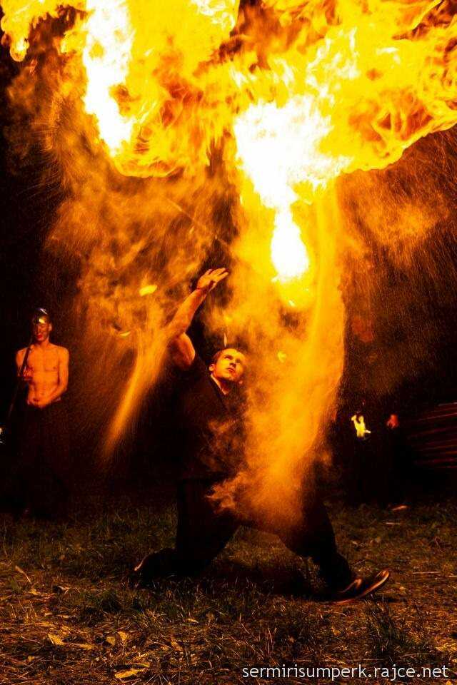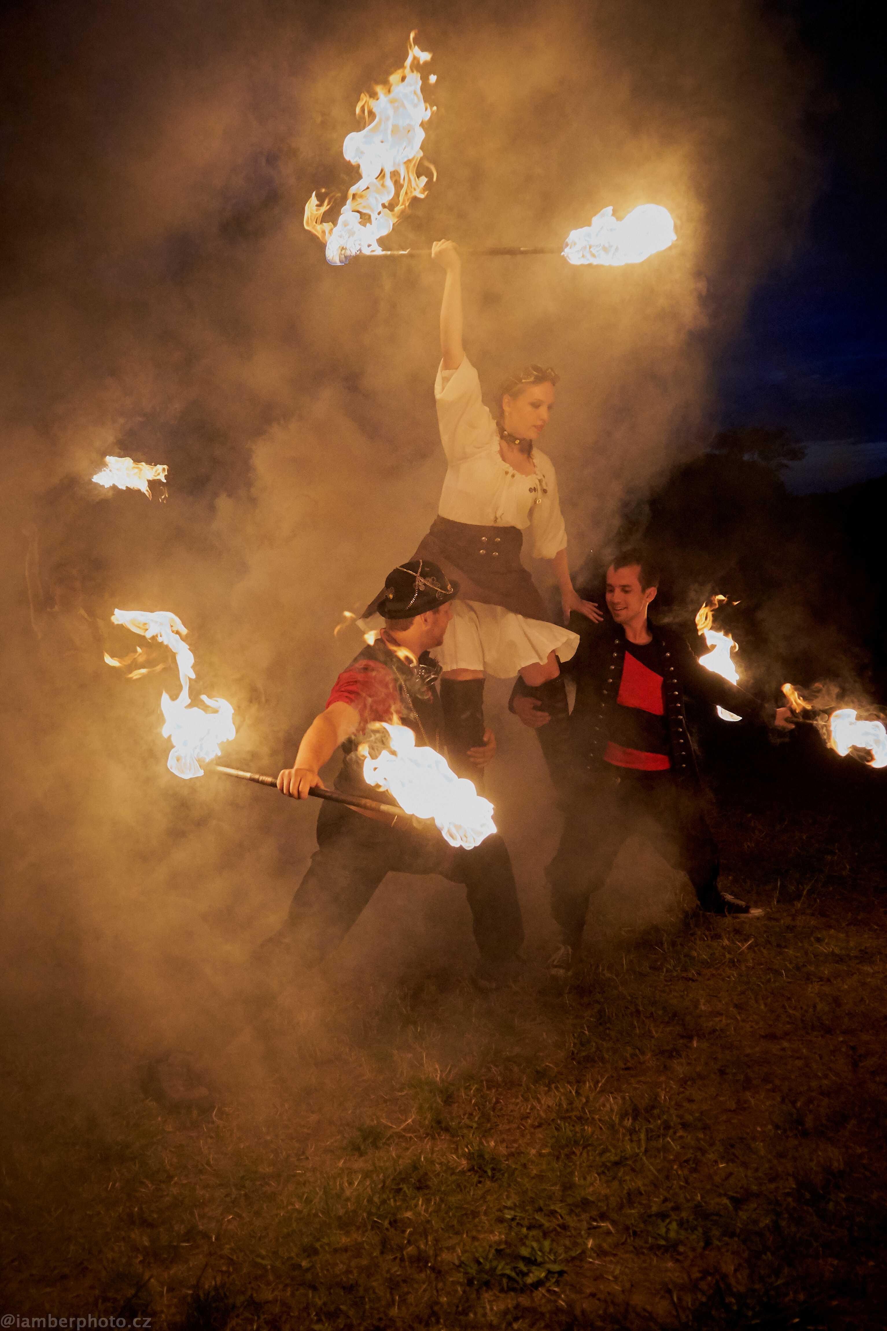 I přesto, že jsme historický šermířský spolek, tak od nás historickou ohnivou show neočekávejte. Naše show je plná akčních choreografií, ve kterých spojujeme oheň dohromady s tancem, divadlem, a dokonce i akrobacií. A díky velkým ohnivým efektům a pyrotechnice se naše vystoupení stává jedinečným a nezapomenutelným zážitkem. Samozřejmostí je pak profesionalita a bezpečnost práce a v případě potřeby i samostatné ozvučení. Tak neváhejte a kontaktujte nás, abychom se mohli domluvit na konkrétním vystoupení.